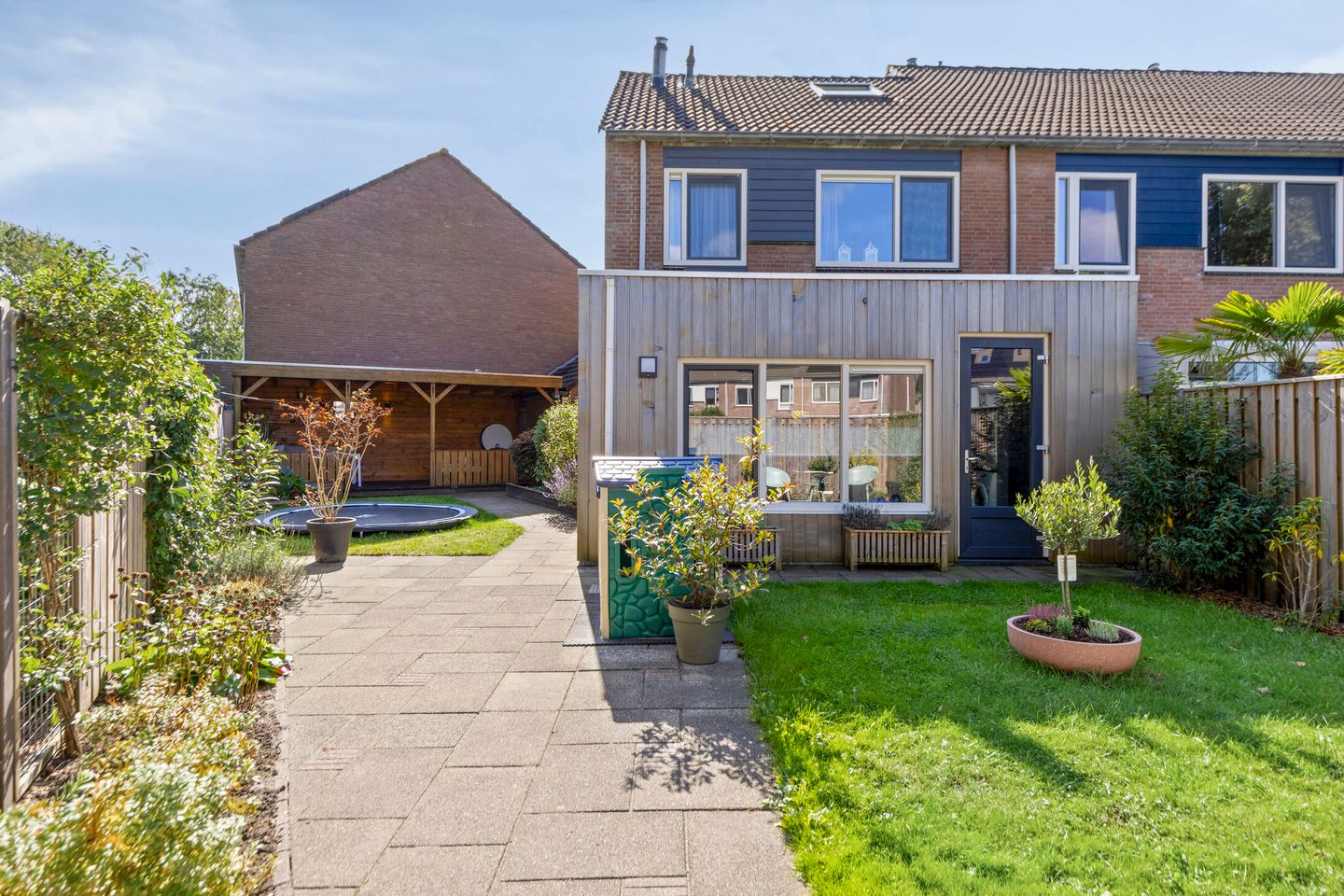 Instapklaar woonplezier op een mooie hoeklocatie! Ben je op zoek naar een moderne, verzorgde woning waar je zó in kunt? Dan is deze verrassend ruime hoekwoning (geschakeld) precies wat je zoekt. Met een uitbouw, bijkeuken, vier slaapkamers en energielabel A is dit een ideale gezinswoning die van alle gemakken is voorzien. Ruimte, licht en comfort Deze moderne woning uit 1979 is in de afgelopen jaren grondig aangepakt. De woonoppervlakte bedraagt circa 124m² en het perceel van 229m² biedt volop buitenruimte. Dankzij de kunststof kozijnen, zonnepanelen en vernieuwde installaties is de woning niet alleen comfortabel, maar ook energiezuinig. Begane grond Via de hal met vernieuwde meterkast en modern toilet kom je in de lichte woonkamer. De open keuken is voorzien van een 5-pits kookplaat met afzuigkap, oven, koelkast en vaatwasser. De uitbouw aan de achterzijde zorgt voor extra leefruimte én een praktische bijkeuken met witgoedaansluitingen en toegang tot de tuin. Tuin en bijgebouwen De achtertuin is netjes aangelegd en voorzien van een nieuwe schutting voor optimale privacy. Onder de overkapping zit je heerlijk beschut, en in de vrijstaande berging met zolder heb je alle ruimte voor fietsen en opslag. Eerste verdieping Hier bevinden zich drie slaapkamers, waaronder één met een handige inbouwkast. De moderne badkamer is uitgerust met een brede wastafel, ligbad, hangend toilet en een aparte douche. Tweede verdieping De zolderverdieping biedt een ruime vierde slaapkamer met twee dakramen die zorgen voor veel daglicht. Daarnaast is er bergruimte achter de knieschotten, een cv-ruimte en een aparte wasmachineaansluiting. Fijne ligging op een kindvriendelijk woonerf Ee woning is gelegen op een rustig en kindvriendelijk woonerf, waar alleen bestemmingsverkeer komt. De autoluwe opzet zorgt voor een veilige speelomgeving voor kinderen. In de buurt vind je volop speelgelegenheden. Een prettige mix van rust en levendigheid! Bijzonderheden • Uitgebouwd in 2021 met bijkeuken • 8 zonnepanelen (2023) en energielabel A • Kunststof kozijnen en gevelpanelen • Nieuwe badkamer, toilet, vloeren en meterkast • Mechanische ventilatie vernieuwd en kanalen gereinigd Kom kijken en laat je verrassen! Zoek je een instapklare gezinswoning met moderne afwerking en een fijne ligging? Maak dan snel een afspraak voor een bezichtiging!