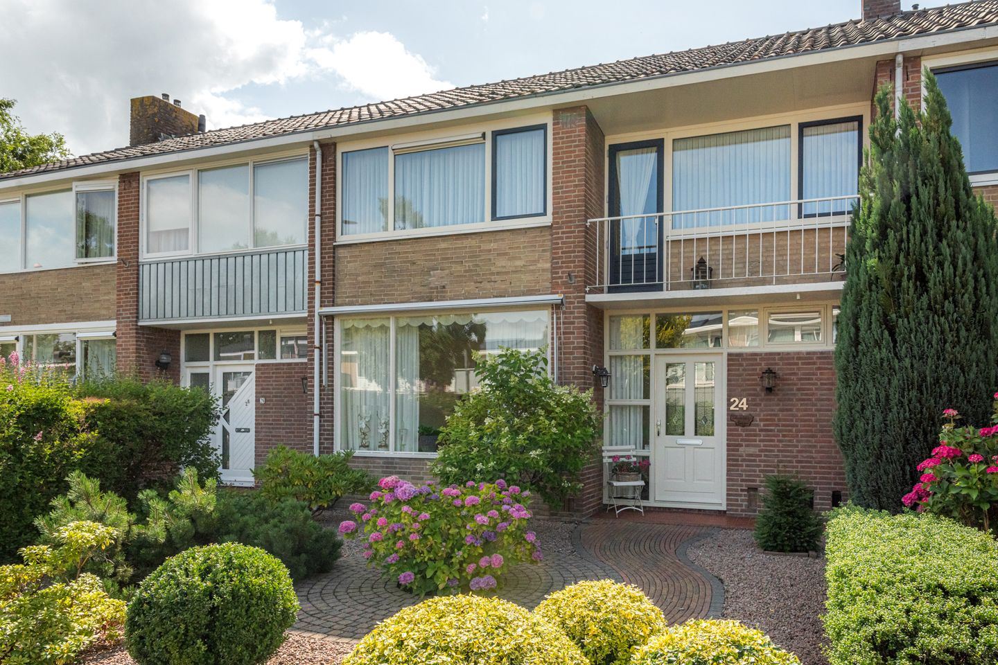 Op prachtige plek, aan de rand van het centrum gelegen, uitstekend onderhouden ruime tussenwoning, zonnige achtertuin (op het zuid-westen), met achterom, houten berging. De woning is boven vrijwel geheel voorzien van kunststof kozijnen en er is een vaste trap naar de 2e verdieping met slaapruimte en een berging. Gelegen op ca. 184 m2 grond.