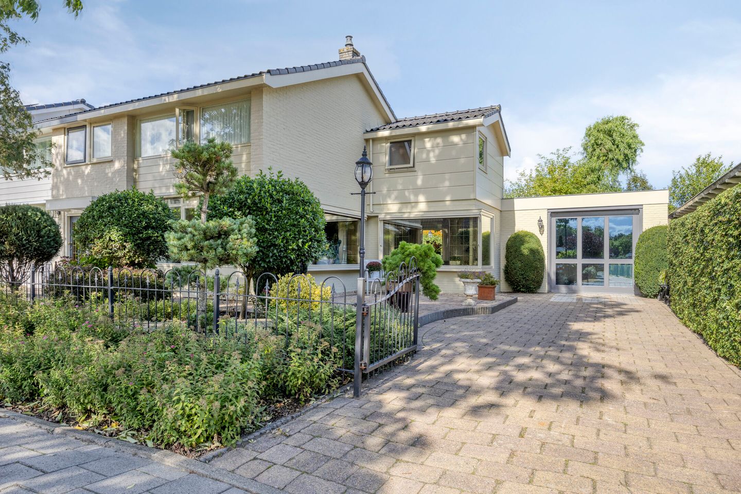 Voortuin: er is een royale oprit waar je met gemak meerdere auto’s kwijt kunt. Ook de tuin is met zorg aangelegd en geeft direct een verzorgde indruk.
