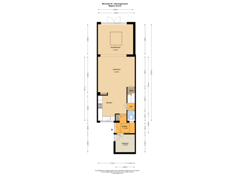 - 65 m² (12,00 meter diep en 5,40 meter breed)
