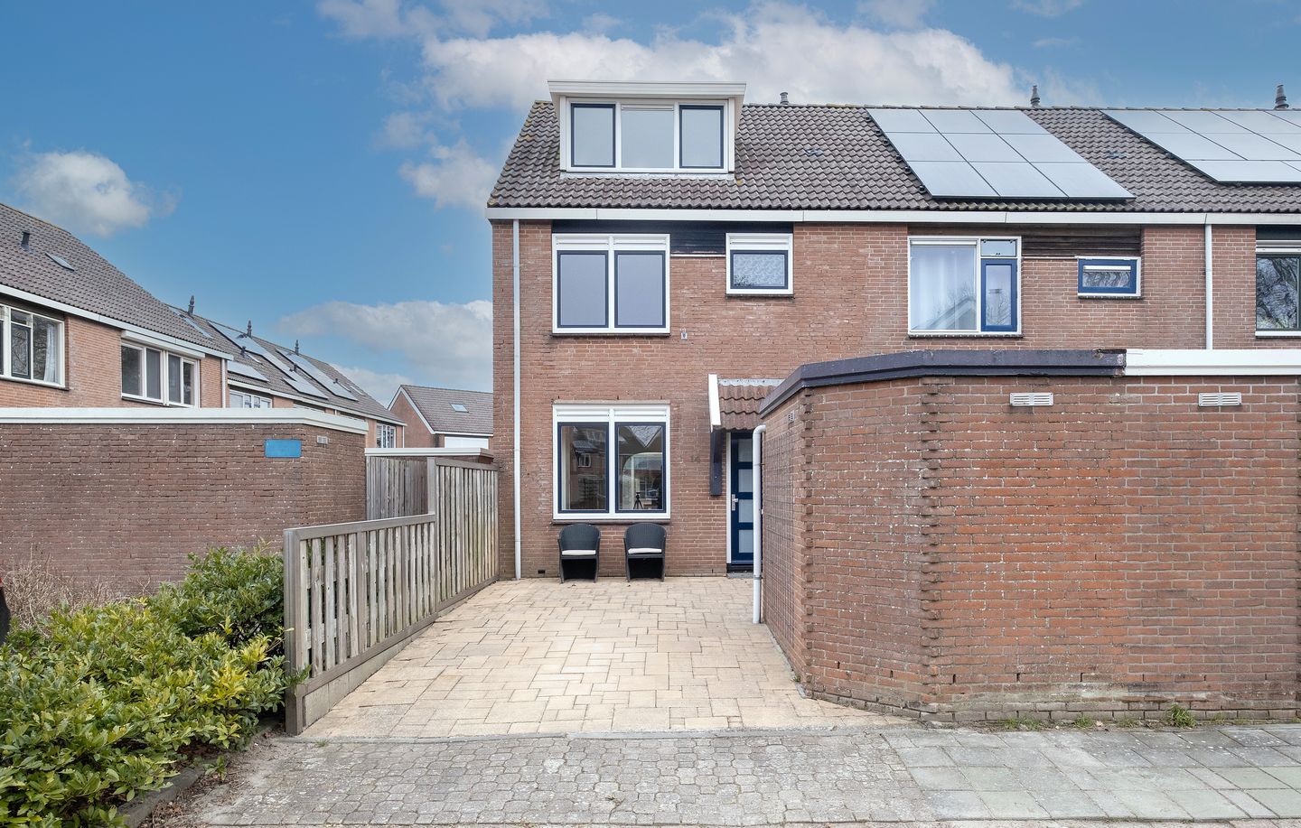 De achtertuin bereik je via de schuifpui en ligt heerlijk zonnig. Doordat er geen directe achterburen zijn, geniet je hier van veel privacy. Achterin staat een berging met veranda, ideaal voor tuinkussens en gereedschap. Via een poort aan de zijkant is de tuin ook achterom bereikbaar.