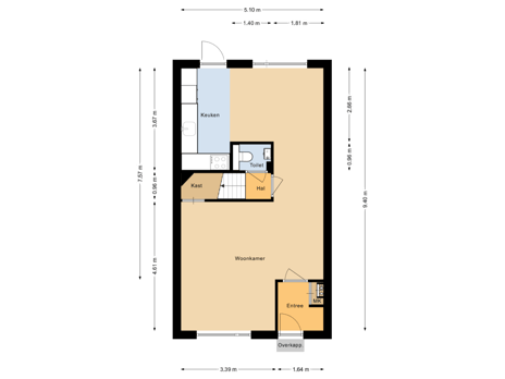 - 59 m² (11,20 meter diep en 5,30 meter breed)