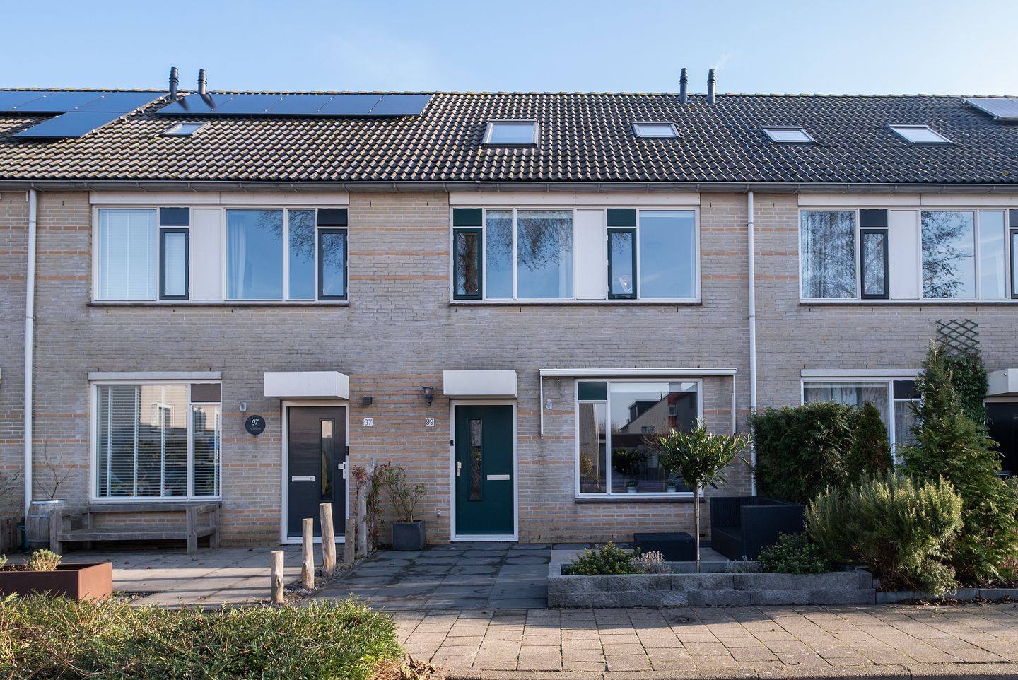 - Buitenzonwering, dakraam, glasvezelkabel, mechanische ventilatie, en TV kabel