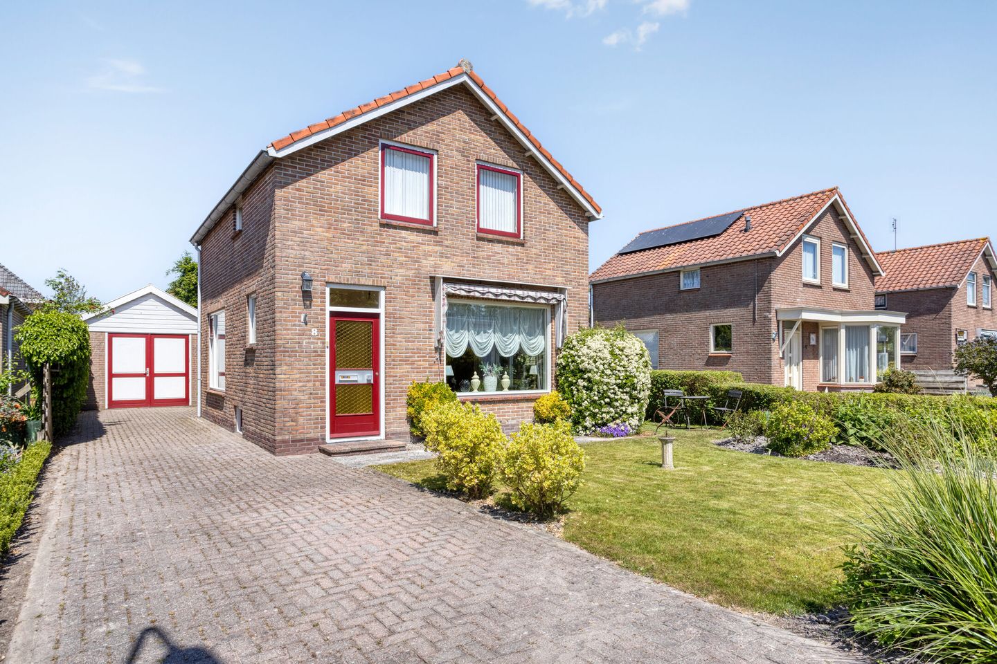 Voortuin: De woning is voorzien van een royale oprit met plaats voor meerdere auto’s, en dankzij de vaste beplanting en het strak gemaaide gazon heeft de woning een fraai en verzorgd aanzicht.
