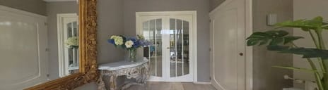 Bij binnenkomst valt meteen de grandeur op: een statige hal met prachtige geslepen glasdeuren, een zwevend toilet en urinoir. De royale woonkamer ademt klasse dankzij het fraaie plafond, een bijzondere gashaard, stijlvolle lichtstraat en getrommeld marmeren vloer met vloerverwarming. Openslaande deuren bieden een prachtig uitzicht en directe toegang tot de tuin.