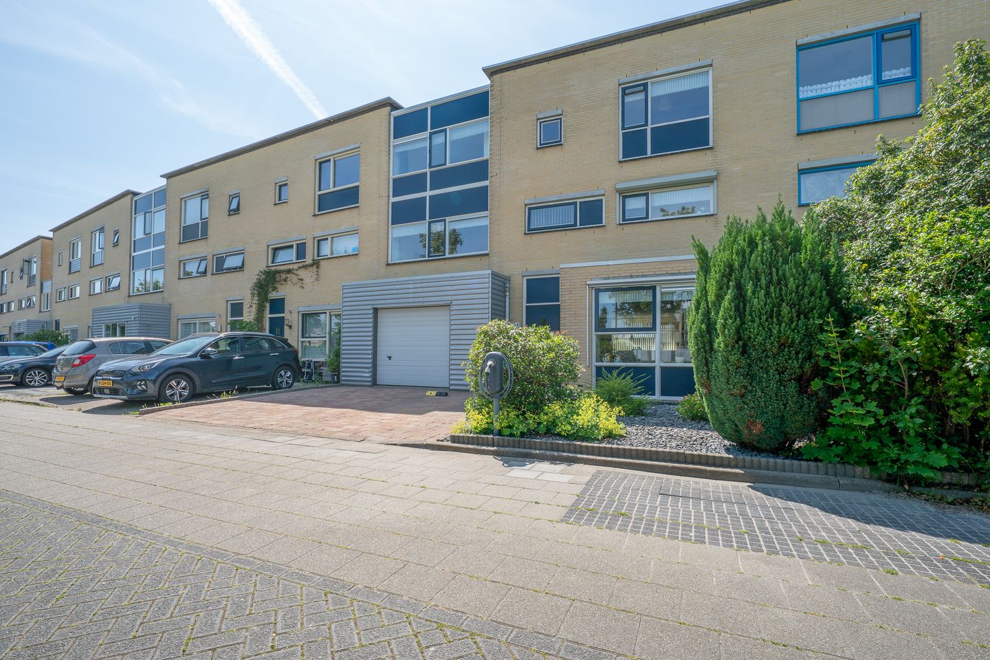 De voortuin is verzorgd en biedt ruimte voor twee auto’s op eigen terrein – een groot pluspunt! De achtertuin ligt op het westen, is onderhoudsvriendelijk aangelegd en beschikt over een houten berging met elektra én een sfeervolle overkapping waar je heerlijk kunt genieten van lange zomeravonden. Uiteraard is er ook een achterom aanwezig.