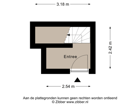 Entree, hal (2.20 x 1.20 m) met trap naar boven gelegen appartement met garderobenis.