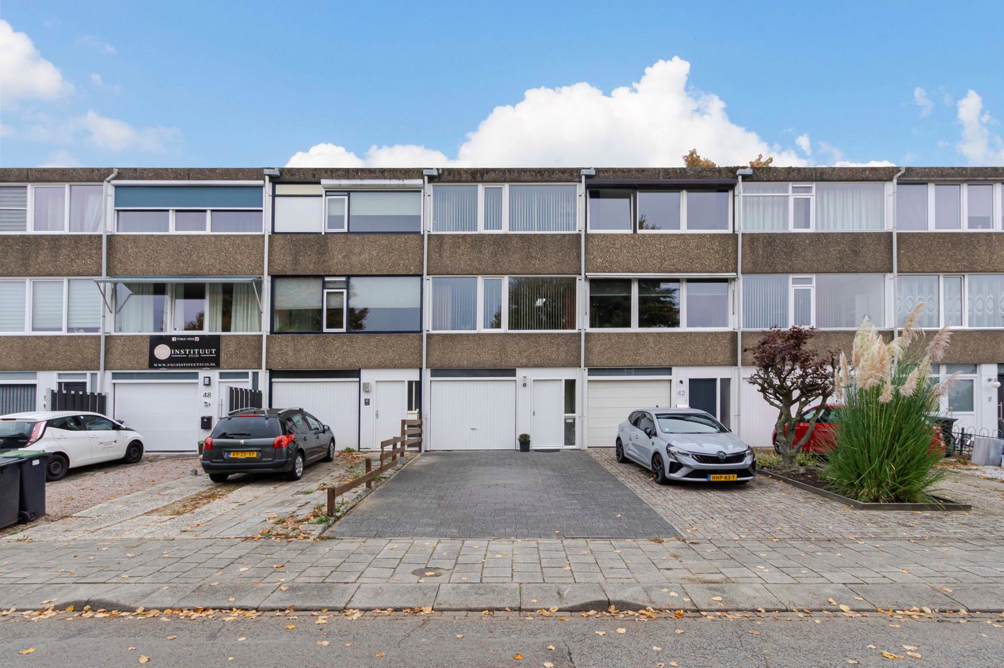 Aan de voorzijde bevindt zich een ruime oprit, die in 2018 is vernieuwd en plaats biedt aan twee auto’s. Daarnaast is er parkeergelegenheid voor een derde auto in de inpandige garage.