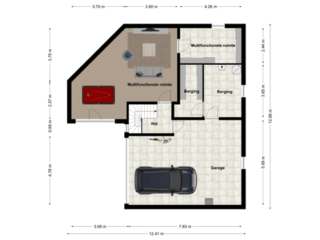 Aan de voorzijde van het souterrain bevindt zich een kantoorruimte met daglichttoetreding, ideaal voor thuiswerken of praktijk aan huis. Aangrenzend ligt nog een extra bergruimte. De ruimtes in het souterrain zijn veelzijdig te gebruiken – van fitnessruimte tot entertainmentruimte – en vormen een waardevolle aanvulling op het totale wooncomfort.