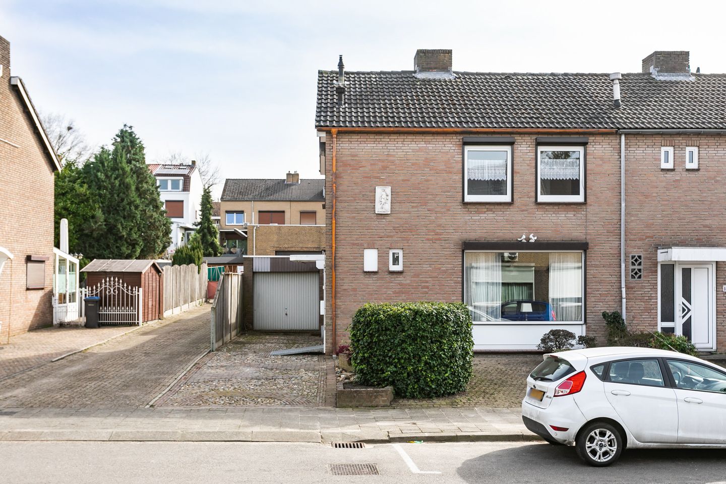 De garage met elektrische sectionaalpoort én een royale oprit met parkeergelegenheid voor meerdere voertuigen maken het plaatje compleet.