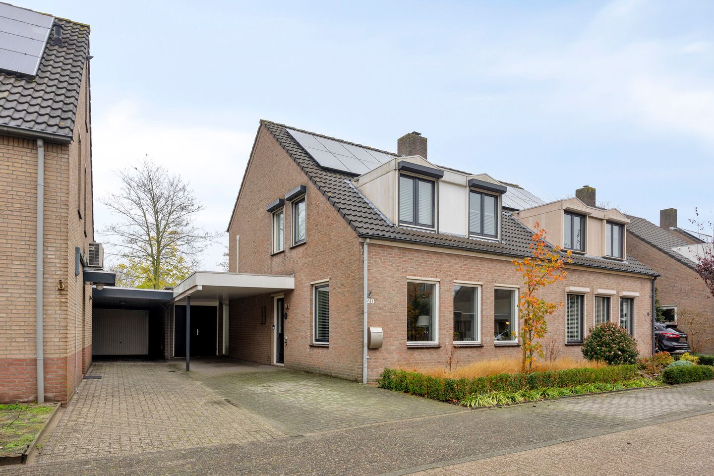 De ruime carport geeft je, middels de twee houten deuren, toegang tot de voorste berging (met lichtkoepel), deze is ook bereikbaar via het achterportaal.