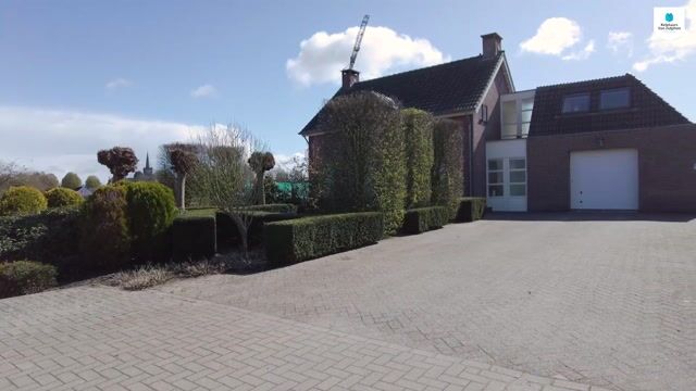 De woning heeft twee opritten, de rechtse geeft toegang tot het bijgebouw en vanaf de linkse oprit geeft toegang tot de garage en de achtertuin.