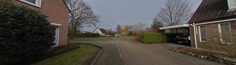 Ook de voortuin is verzorgd aangelegd met betegeling, gras en beplanting. Je woont hier aan een rustige straat, met vrij zicht op het groen.