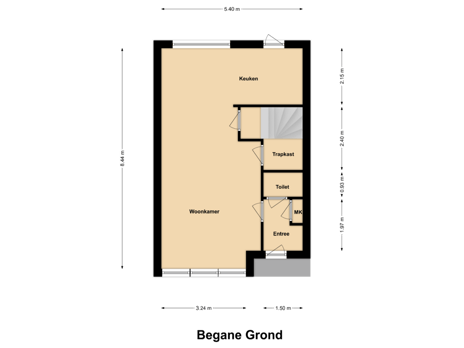 Bij binnenkomst tref je aan de voorzijde de entree met toegang tot de meterkast, de toiletruimte en de woonkamer. De toiletruimte is deels betegeld en voorzien van een hangend toilet en een fonteintje.