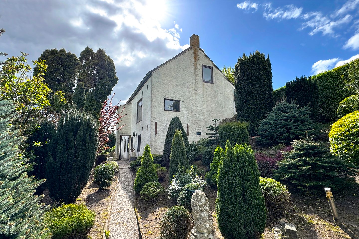 Als we aan de linkerkant beginnen dan zie je een schitterend volgroeide tuin met heel veel groen. Volwaardige beplanting siert de tuin. Middels een pad kun je al het mooie groen aanschouwen.