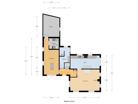 Entree, riante hal, meterkast, toilet met fonteintje, toegang tot de woonkamer met openhaard.