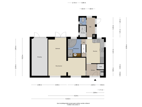 Binnenkomend in de hal heb je toegang tot de woonkamer en de keuken.