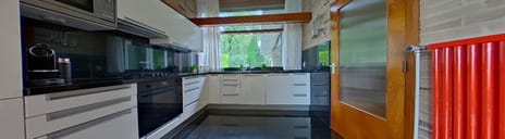 De uitbouw aan de achterzijde is volledig tuingericht, waardoor binnen en buiten naadloos in elkaar overlopen. Aan de voorzijde geniet u dankzij de grote raampartijen van het fenomenale panoramische uitzicht. Tezamen met de hoogte van de leefruimte, vormt dit een speels geheel waar nog veel meer mogelijk is, bijvoorbeeld door het verwijderen van slechts één muur. Zie hiervoor een aantal impressies in de woningpresentatie. De kenmerkende jaren 60 architectuur op zijn best!
