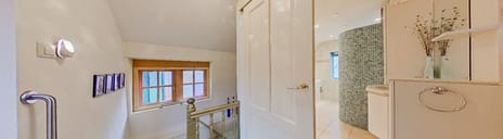 Op de eerste verdieping bevinden zich 3 ruime en lichte slaapkamers, allemaal voorzien van grote raampartijen die zorgen voor een prettig hoeveelheid daglicht. Elke kamer heeft een mooi formaat, waardoor er voldoende ruimte is voor een comfortabel bed en extra meubilair. Een van de slaapkamers biedt bovendien toegang tot een inpandig balkon, waar u kunt genieten van een rustig moment in de buitenlucht.