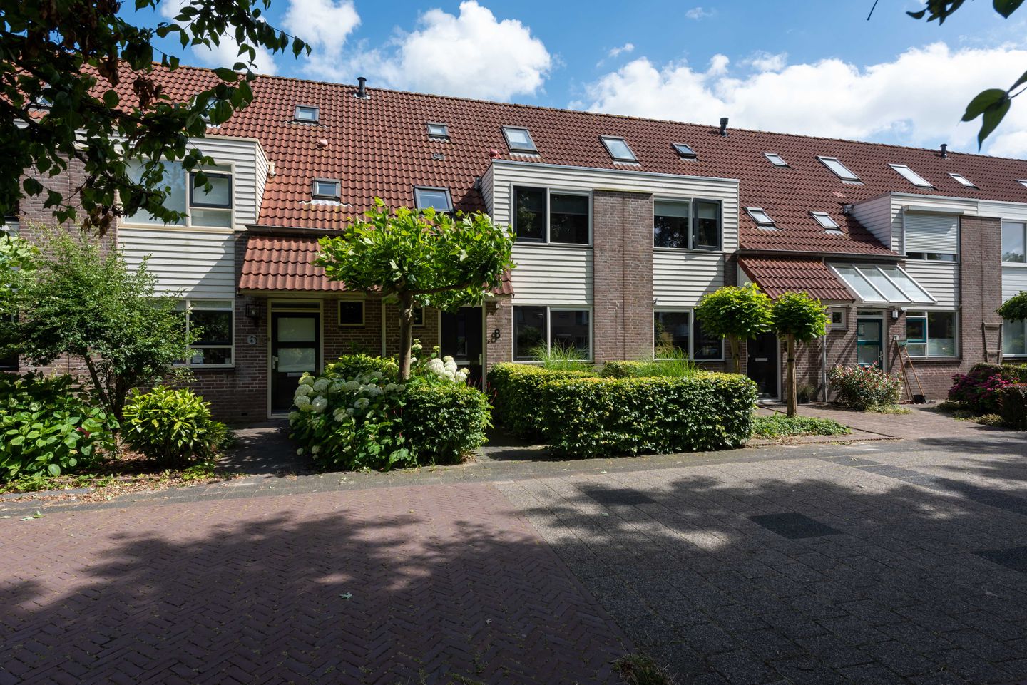 De tuin aan de achterzijde is netjes aangelegd, volledig bestraat en keurige erfafscheidingen. Aan de achterzijde bevindt zich een ruime veranda, afsluitbaar via een glazenwand, een houten berging en de achterom.