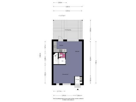 - 45 m² (9,00 meter diep en 5,00 meter breed)