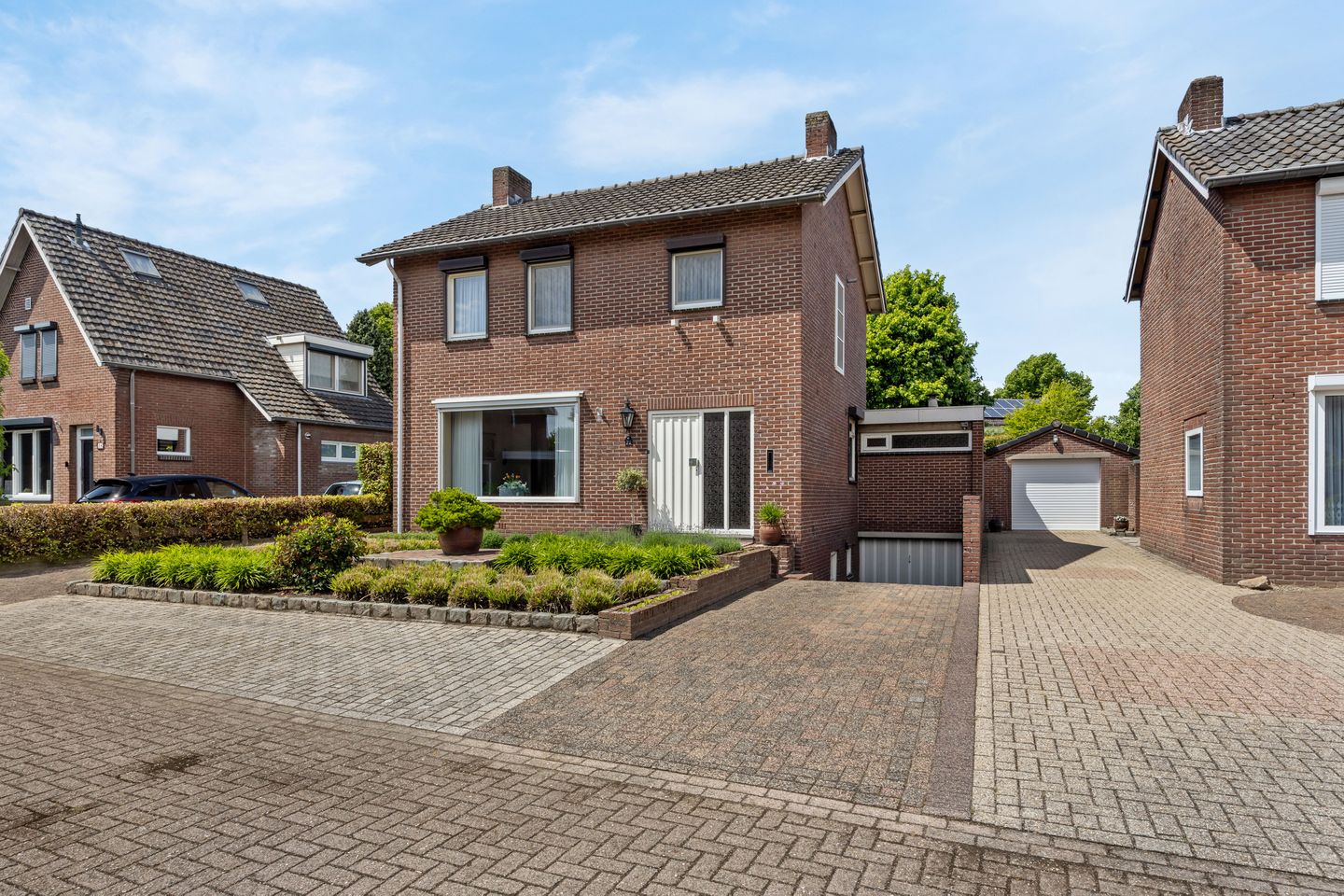 Een buitenberging biedt extra opbergmogelijkheden. En dankzij de ruime oprit en carport is parkeren altijd een gemak. Dit is zo’n tuin waar je ’s zomers niet meer weg wilt, en waar de kinderen ongestoord kunnen spelen.