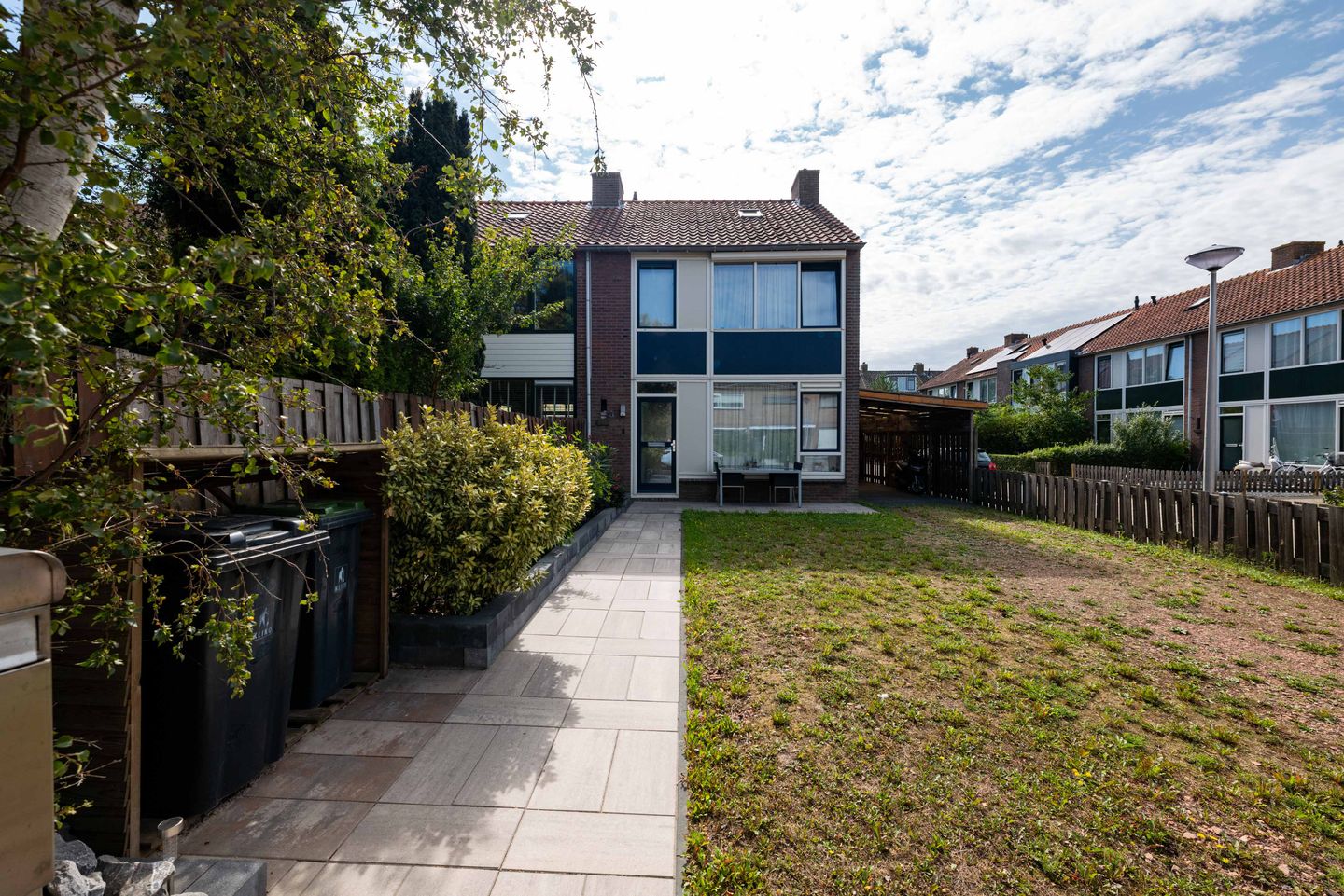Hoekwoning op een royaal perceel met carport en tuin op het zuiden