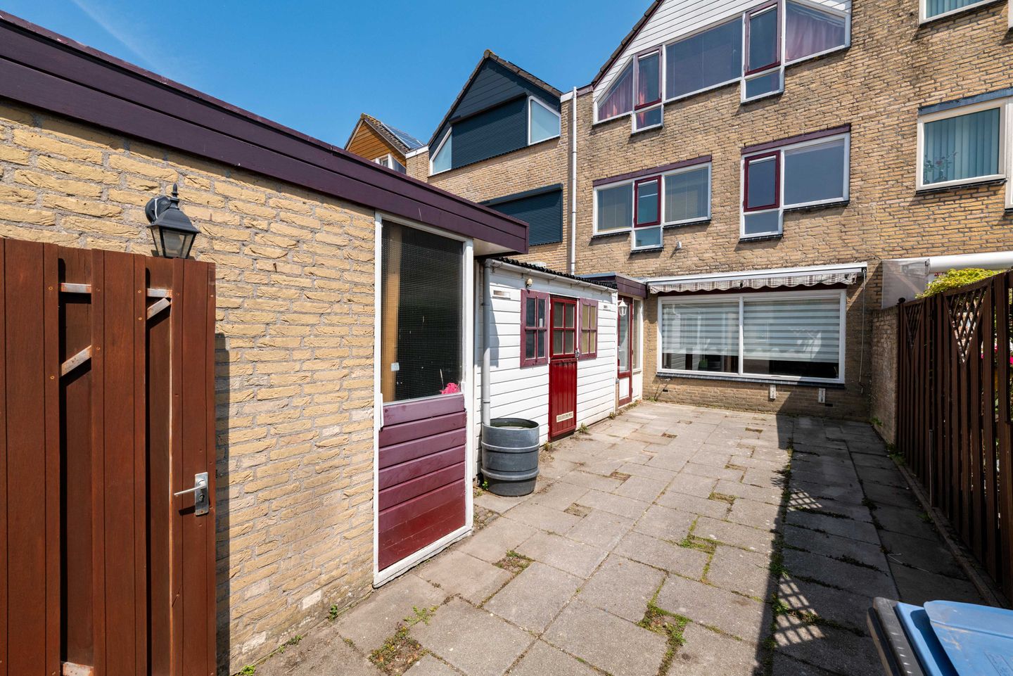 De achtertuin is onderhoudsvriendelijk aangelegd en gesitueerd op het zuid-westen. De stenen en houten berging zorgen voor voldoende opbergmogelijkheden.
