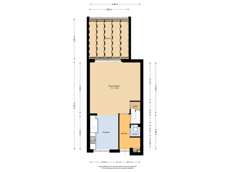 - 53 m² (9,75 meter diep en 5,40 meter breed)