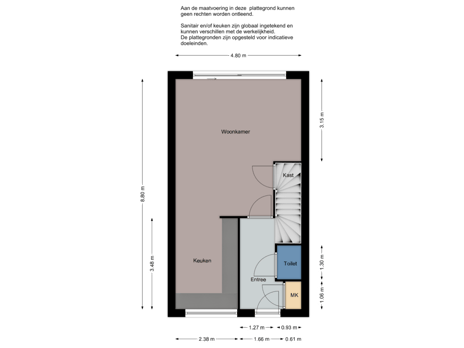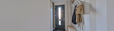 Meterkast met verborgen opbergruimte, laminaatvloer v.v. vloerverwarming, trapopgang en toilet.
