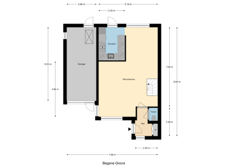 - 62 m² (9,50 meter diep en 6,50 meter breed)