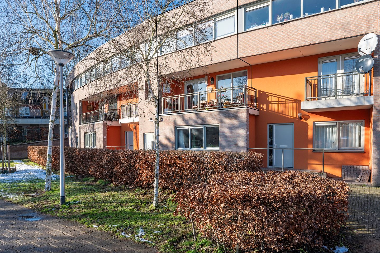 Via openslaande deuren betreedt u het balkon over de volle breedte van de woning. Een heerlijke plek om in de zon te zitten. Verder heeft u een leuk uitzicht op het winkelgebied en het grote plantsoen.