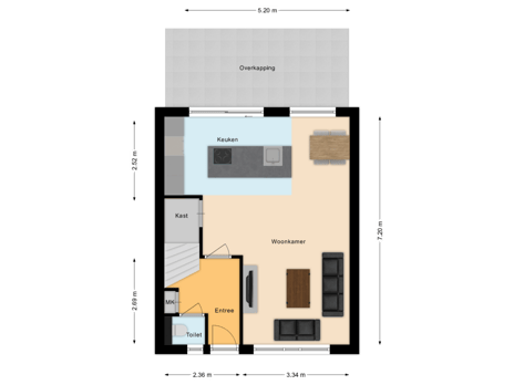 - 69 m² (12,50 meter diep en 5,50 meter breed)