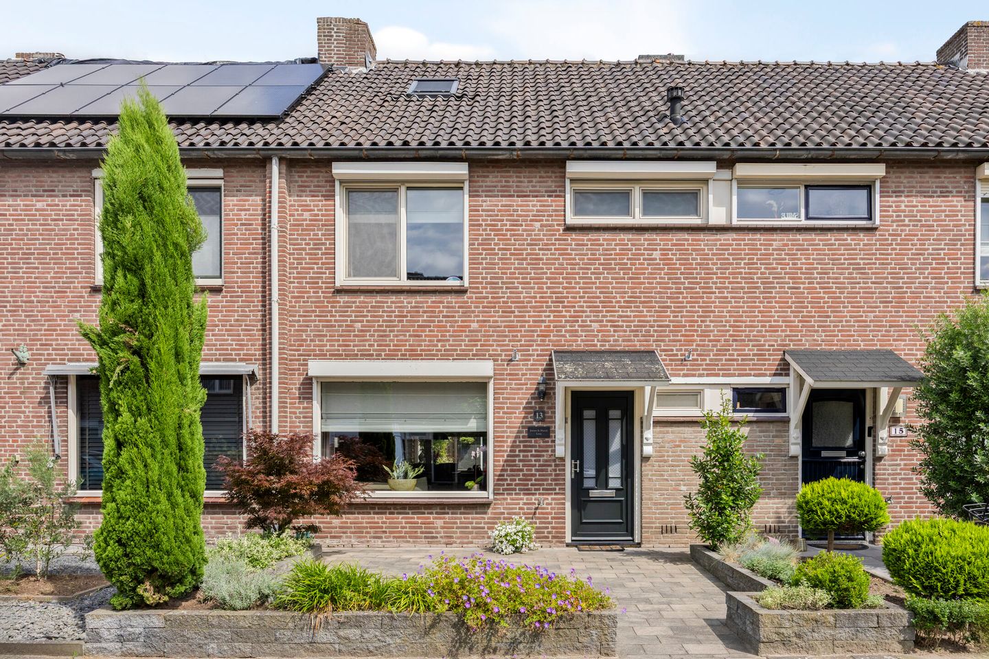 De tuin is met zorg aangelegd en straalt rust en sfeer uit. Hier vind je onder andere een fijne overkapping, een zonnig terras, een gezellige zithoek en fraai aangelegde borders met een variatie aan beplanting. De frisse, groene begroeiing komt al vroeg in het voorjaar tot leven en zorgt voor een natuurlijke, beschutte sfeer. Dankzij de vrije achterom is de tuin gemakkelijk bereikbaar.