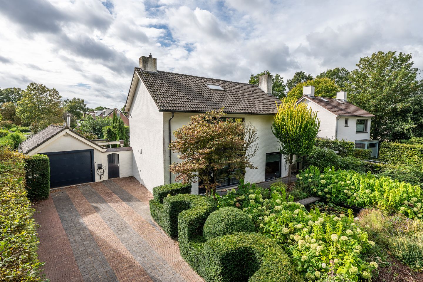 Via royale oprit met mogelijkheid voor het plaatsen van meerdere auto’s naar voor entree van de woning.