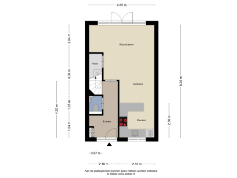 - 42 m² (8,00 meter diep en 5,20 meter breed)