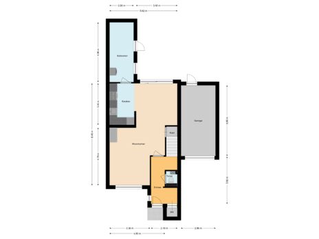 De garage ca. 5.86 m x 2.86 m is voorzien van een stalen kanteldeur en een achterdeur naar de tuin. Ideaal voor opslag, hobby’s of het stallen van fietsen en motoren.