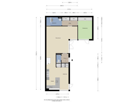 - Deze woning is door een professioneel bureau volgens de NEN 2580 norm ingemeten. Ondanks dat de inmeting met de grootste zorgvuldigheid is uitgevoerd kunnen wij hieromtrent geen enkele vorm van aansprakelijkheid aanvaarden
