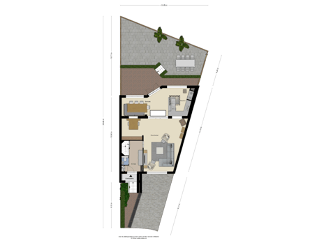 De woonkamer met prachtige Afzelia houten vloer, is ruim opgezet en biedt volop mogelijkheden voor een royale zithoek. De speelse vormgeving van de ruimte en de natuurlijke lichtinval maken dit een plek waar comfort en uitstraling samenkomen.
