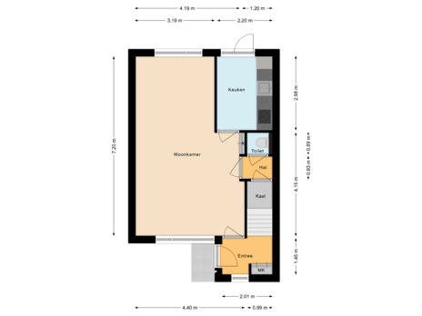 Via de voordeur komt u binnen in de hal/ entree waar de meterkast is gesitueerd alsmede de trapopgang naar de 1e verdieping. De hal is voorzien van een laminaatvloer, stucwerk wanden en een spuitwerk plafond.