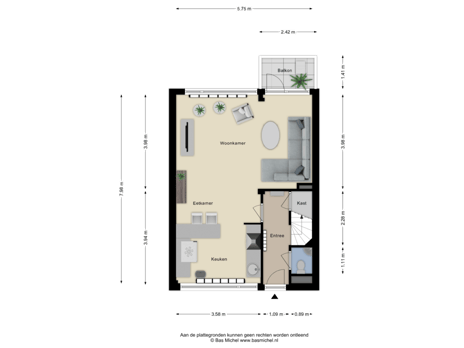 De vermelde afmetingen/ oppervlakten in deze informatie zijn gemeten op basis van de BBMI (Branche Brede Meetinstructie). De meetinstructie is bedoeld om een meer eenduidige manier van meten toe te passen voor het geven van een indicatie van de gebruiksoppervlakte. De meetinstructie sluit verschillen in meetuitkomsten niet volledig uit, door bijvoorbeeld interpretatieverschillen, afrondingen of beperkingen bij het uitvoer en van de meting.