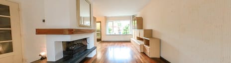 Ruime en sfeervolle woonkamer met veel lichtinval dankzij de grote ramen aan zowel de voor- als achterzijde. Aan de voorzijde bevindt zich het zitgedeelte, aan de achterzijde het eetgedeelte dat in open verbinding staat met de keuken. De open haard vormt het gezellige middelpunt van de ruimte en zorgt voor warmte en een extra sfeerdimensie.