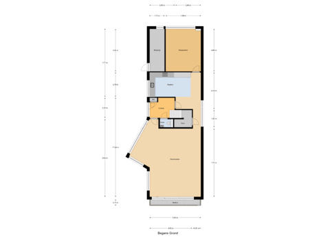 - 256 m² (28,58 meter diep en 13,76 meter breed)