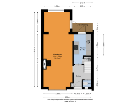 - 72 m² (9,00 meter diep en 8,00 meter breed)