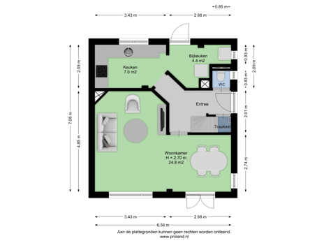 - 148 m² (13,80 meter diep en 10,70 meter breed)