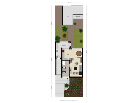 - Perceelgrootte: 205 m2 eigen grond. Daarnaast wordt een stuk tuingrond aan de zijkant gehuurd van ca. 220 m2;