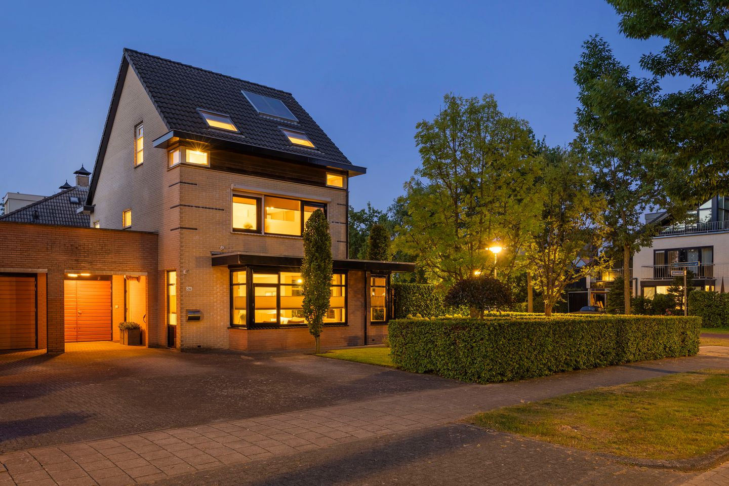 Overdekte entree. Via de hal met meterkast, gaderobenis en modern hangend toilet met fontein stap je binnen in de L-vormige woonkamer voorzien van een parketvloer. De grote raampartijen (met screens!) op de begane grond zorgen voor een overvloed aan natuurlijk licht en geven een prachtig uitzicht op onder andere de zij-gelegen tuin. Door de fijne indeling is er meer dan genoeg plaats voor een royale zithoek en een riante eettafel. Vanuit hier is er toegang tot de lichte en moderne keuken (2014) met diverse inbouwapparatuur: inductiekookplaat, vaatwasser, heteluchtoven, magnetron, koekast en een afzuigkap. Door middel van dubbele deuren bereik je hier de tuin met de "louvre" overkapping. Vanuit de keuken bereik je het tochtportaal met kastenwand en vriezer, deur naar de tuin en een deur naar de garage/berging. De garage is nageisoleerd met aansluitingen witgoed, deur naar de tuin en dubbele deuren naar de oprit.