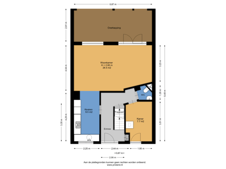 - 43 m² (5,78 meter diep en 7,47 meter breed)