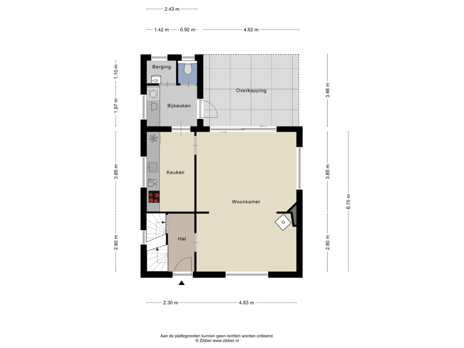 Vanuit de keuken is de bijkeuken annex portaal bereikbaar. Deze is voorzien van een werkblad met witgoedaansluitingen eronder. Vanuit de bijkeuken is de cv, berging, het vernieuwde (2021) gastentoilet en de nieuwe overkapping achter de woonkamer bereikbaar.