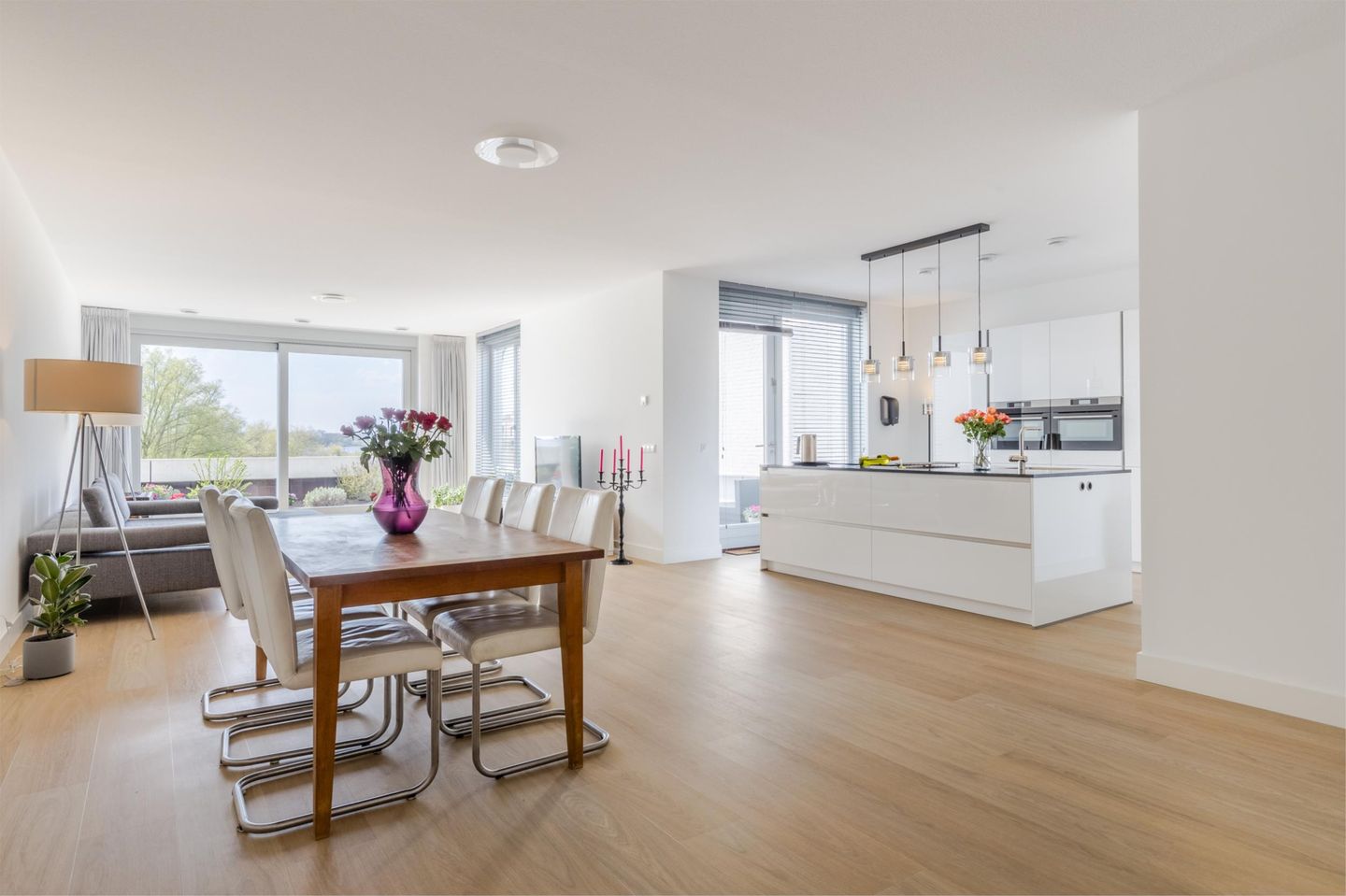 Een plek om je uit te leven is de luxe woonkeuken met kookeiland. Bij mooi weer lunch of dineer je bovendien op het aangrenzende zonneterras. Daar geniet je dan ook van de langsvarende bootjes en het uitzicht.